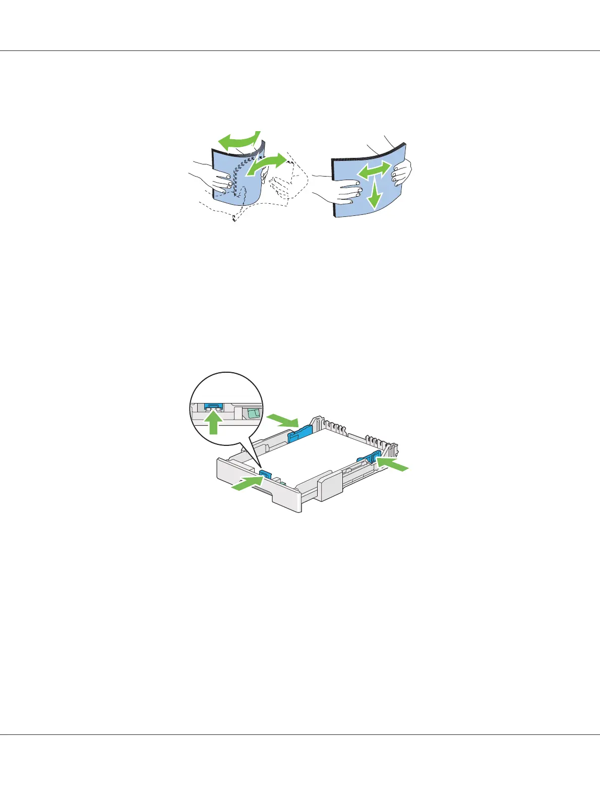 4. Before loading the print media, flex the sheets back and forth, and then fan them. Straighten the