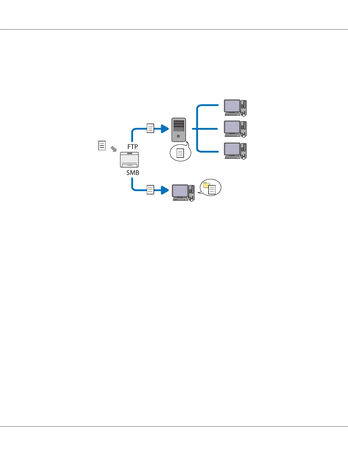 the scanned documents to a network computer using the FTP or SMB protocol.