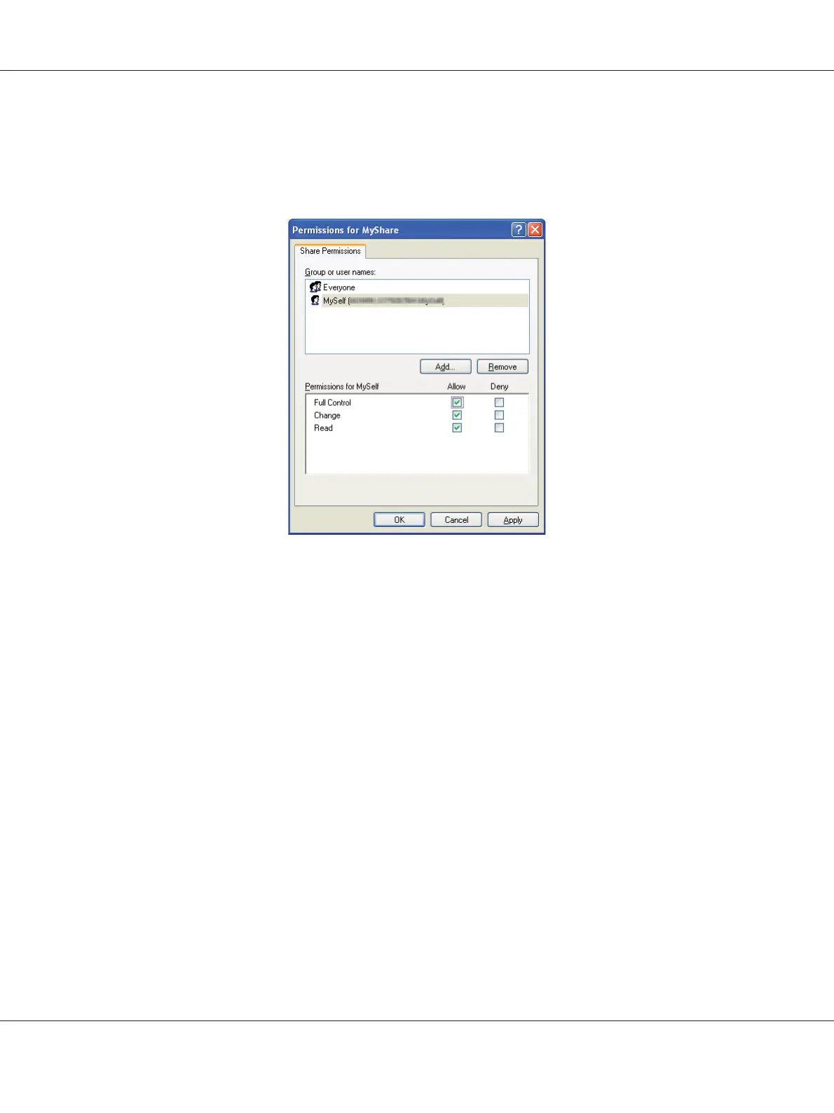12. Click the user login name that you have just entered. Select the Full Control check box. This will
