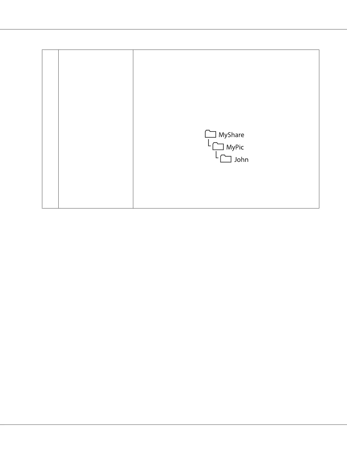 Example: Shared folder name: MyShare, Second-level folder name: MyPic,