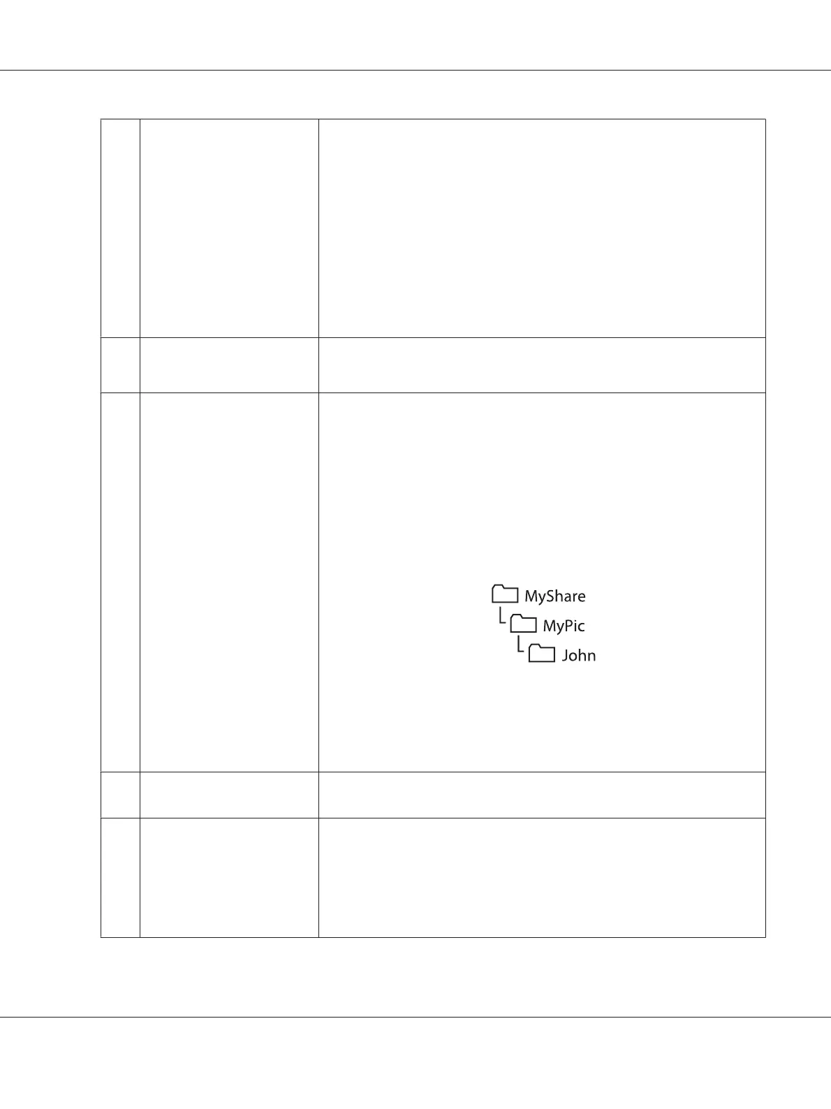 Example: Shared folder name: MyShare, Second-level folder name: MyPic,