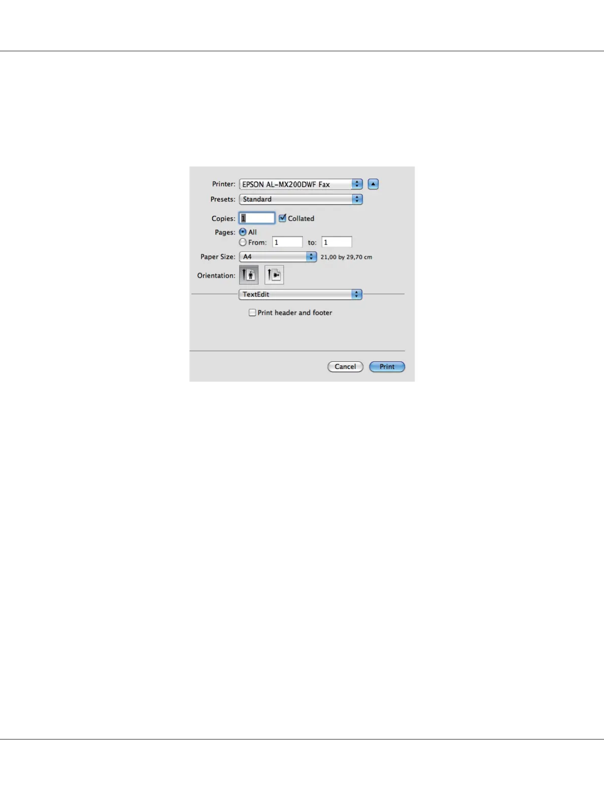 2. Open the print dialog box from the application, and then select your fax driver.