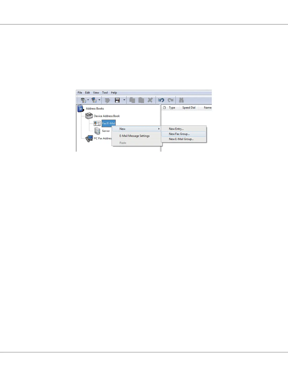 3. Right-click the Fax/E-Mail icon, and then select New — New Fax Group.