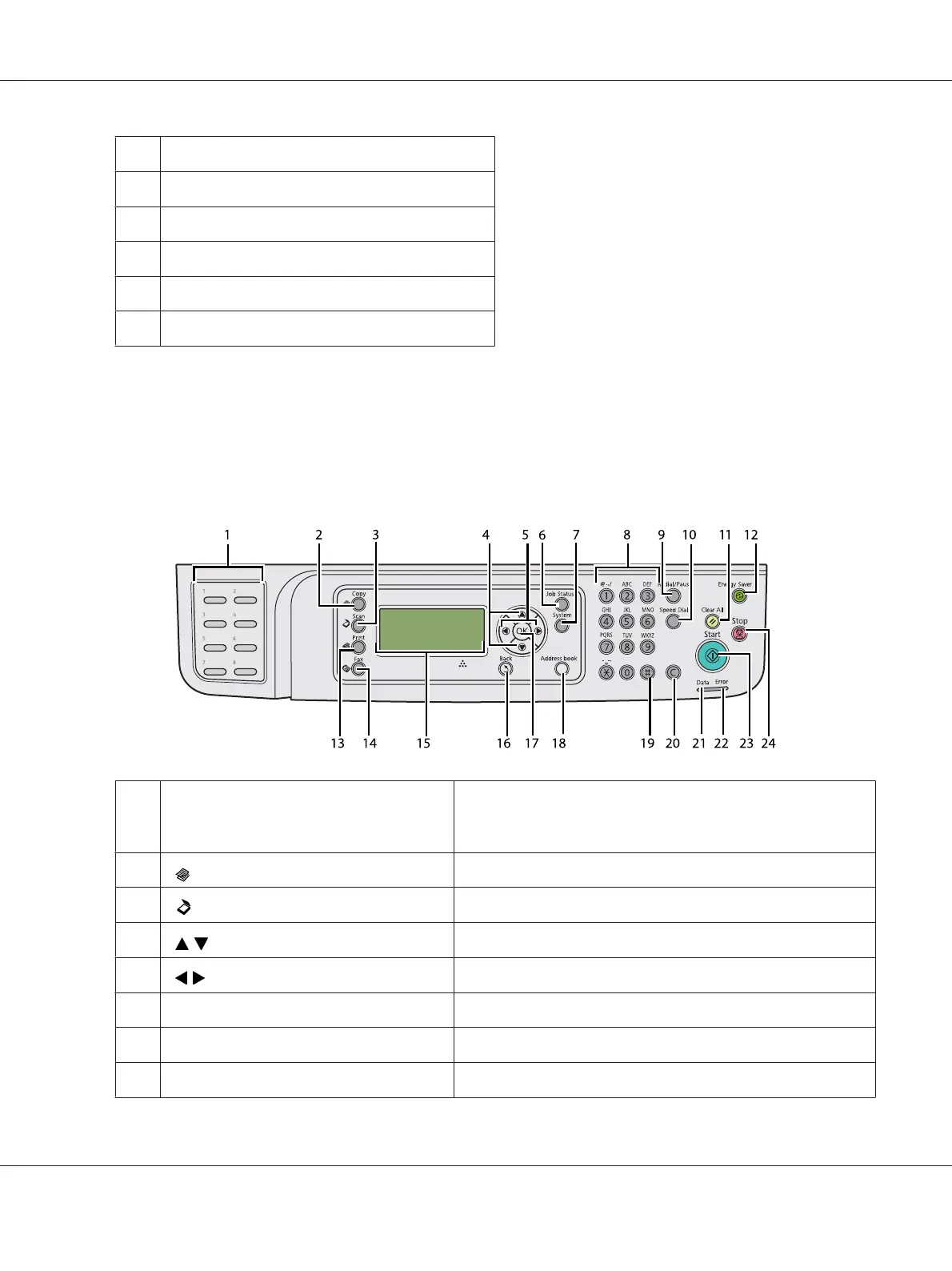1 One-touch buttons Calls up the stored fax number registered in the Phone Book. The