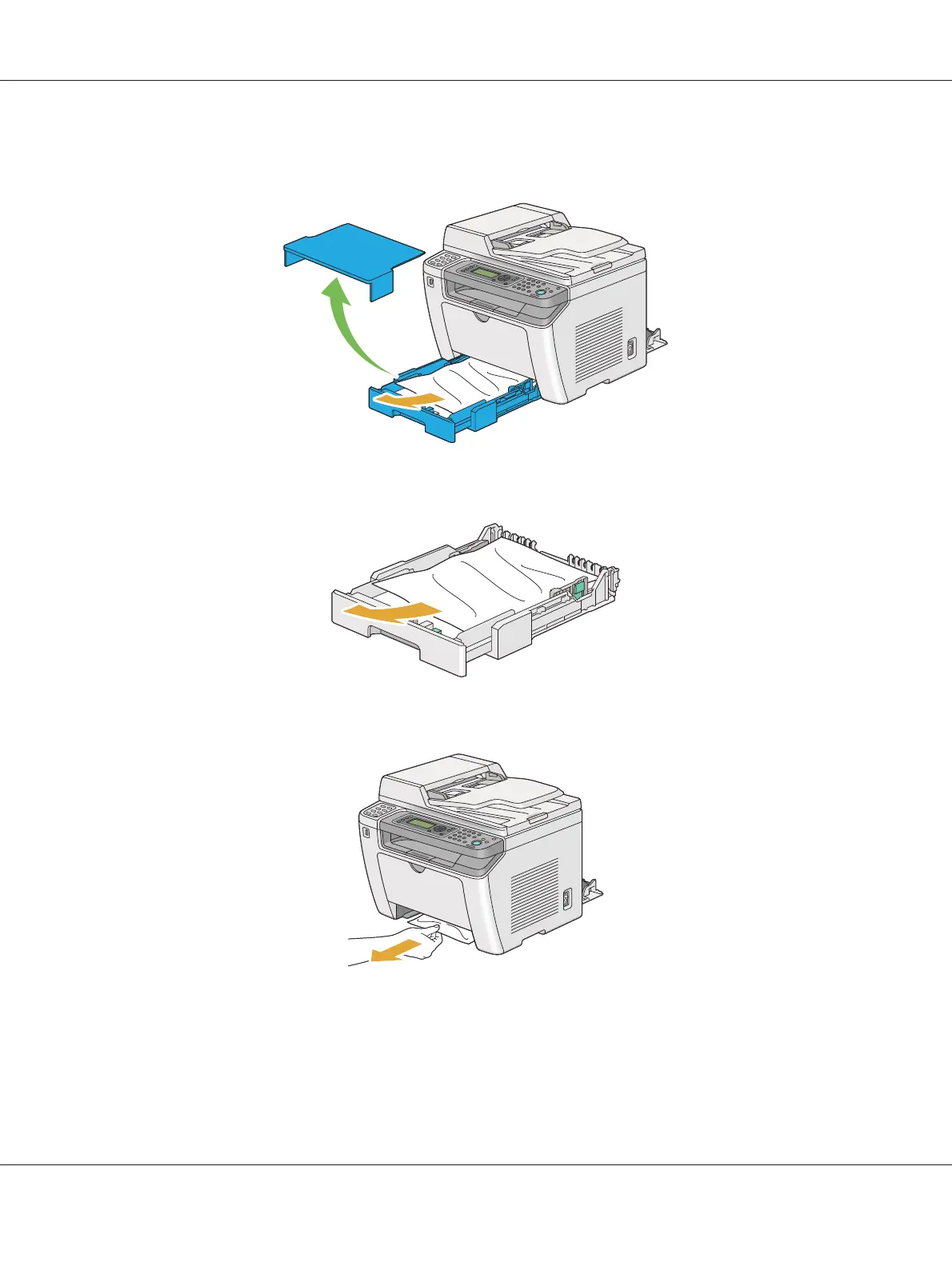 3. Pull the paper tray out of the printer carefully. Hold the tray with both hands, lift the front slightly,