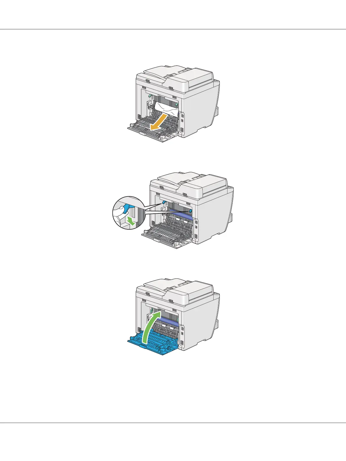 3. Remove the jammed paper from the rear of the printer.