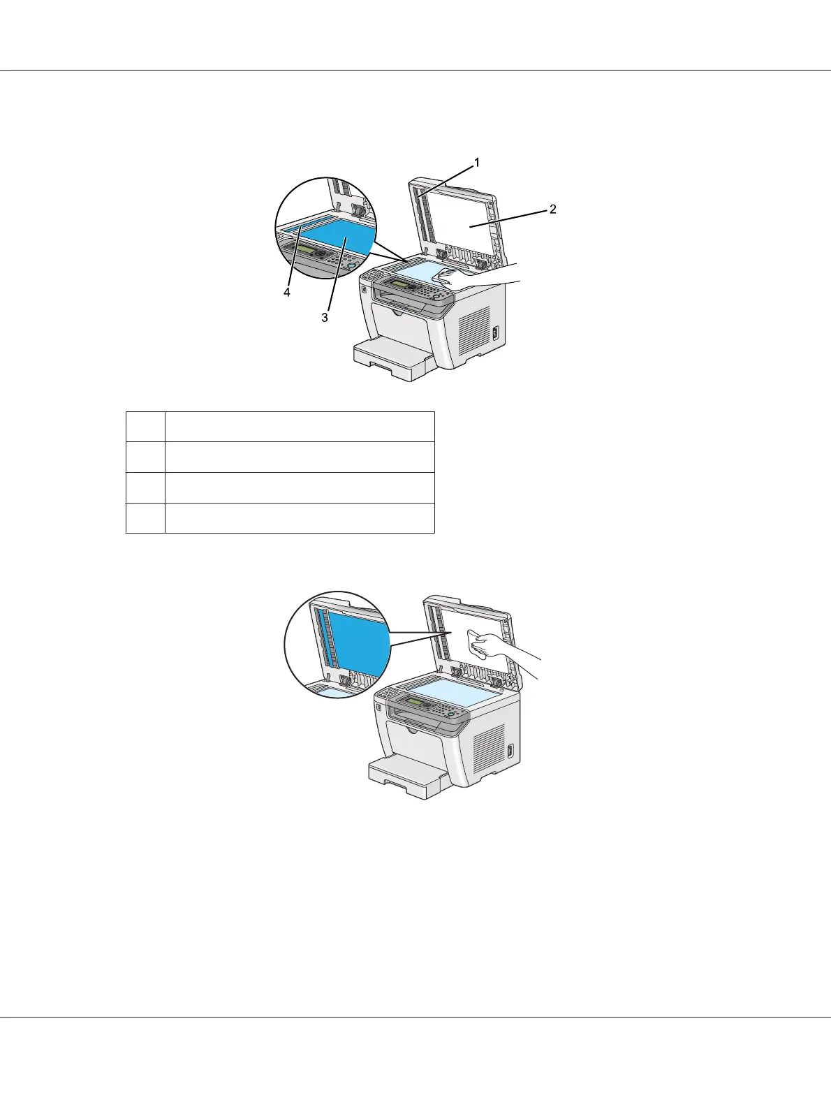 3. Wipe the surface of the document glass and ADF glass until they are clean and dry.