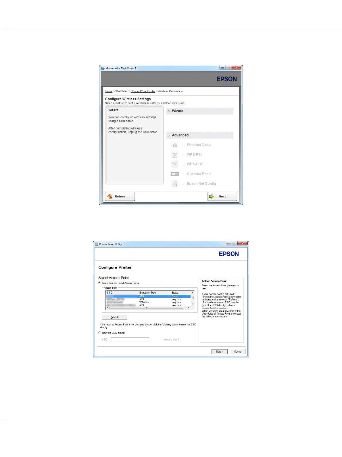 Select Access Point screen appears.