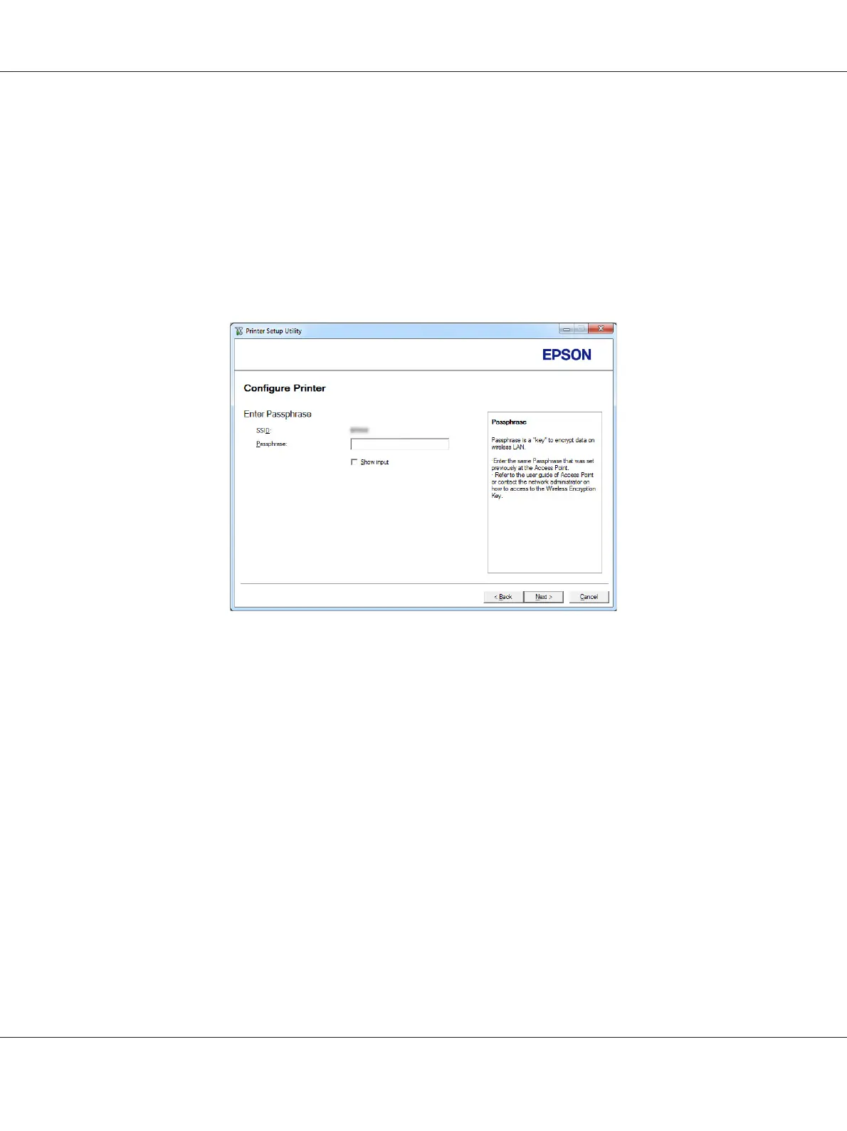 11. Enter for Passphrase for the SSID you specified above and click Next.