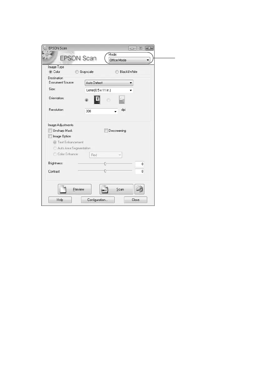 4. Epson Scan opens in Office Mode the first time you use it. (You can change