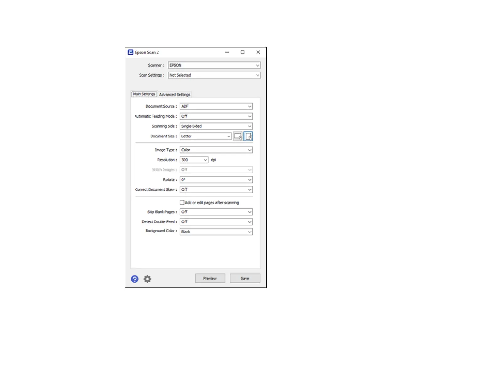 Note: The Document Source setting is automatically set to ADF for your product.