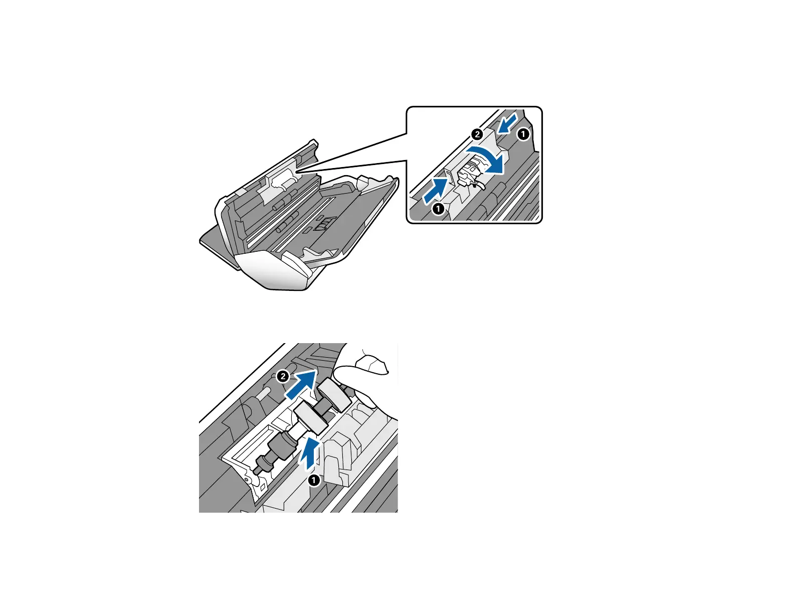 7. Squeeze the hooks on the sides of the separation roller cover and open the cover.