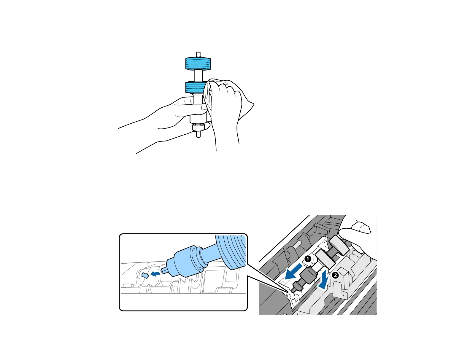9. Wipe off any dust or dirt on the separation roller using a genuine Epson cleaning kit or a soft, moist