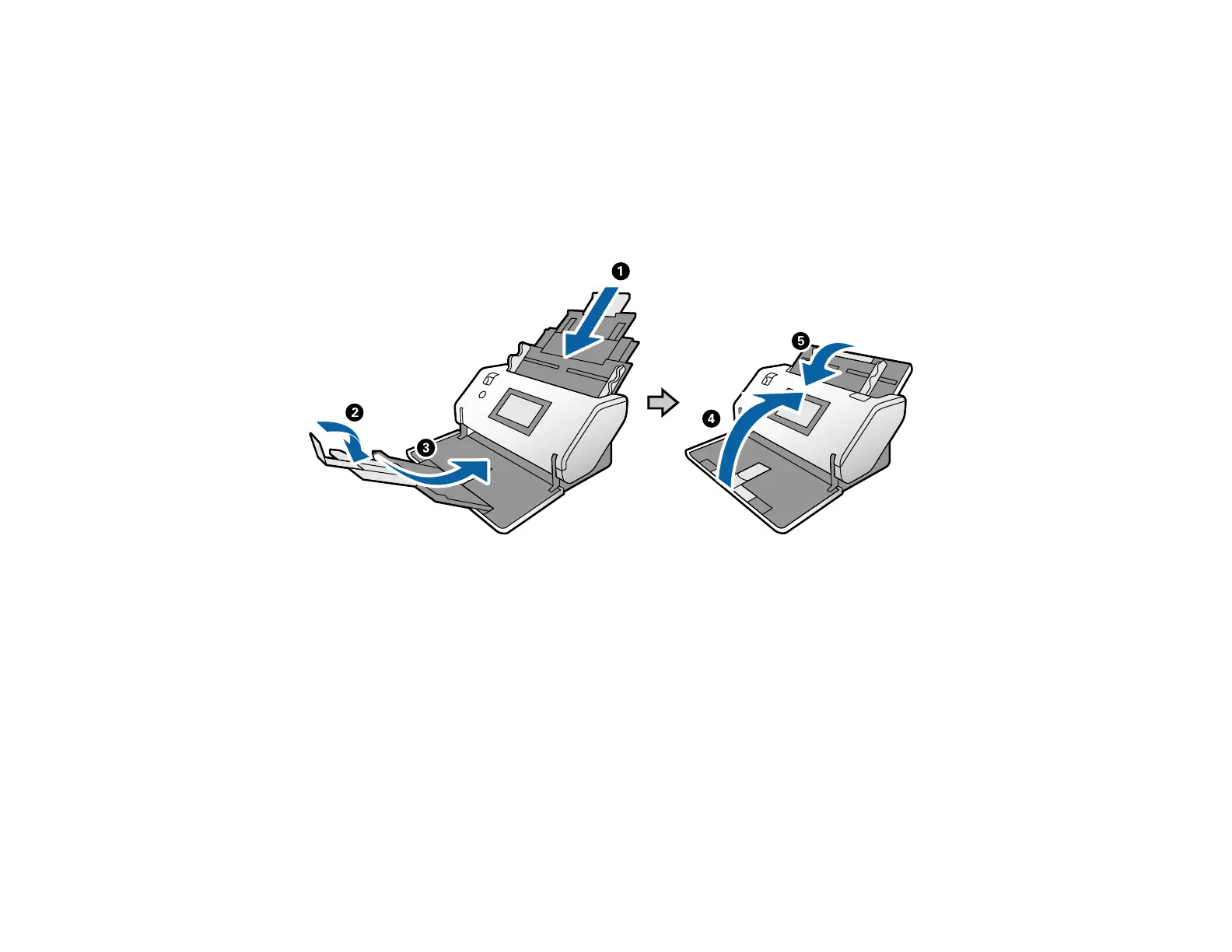Note: When the scanner is in Storage Mode, the power turns off and the output tray is locked in position.