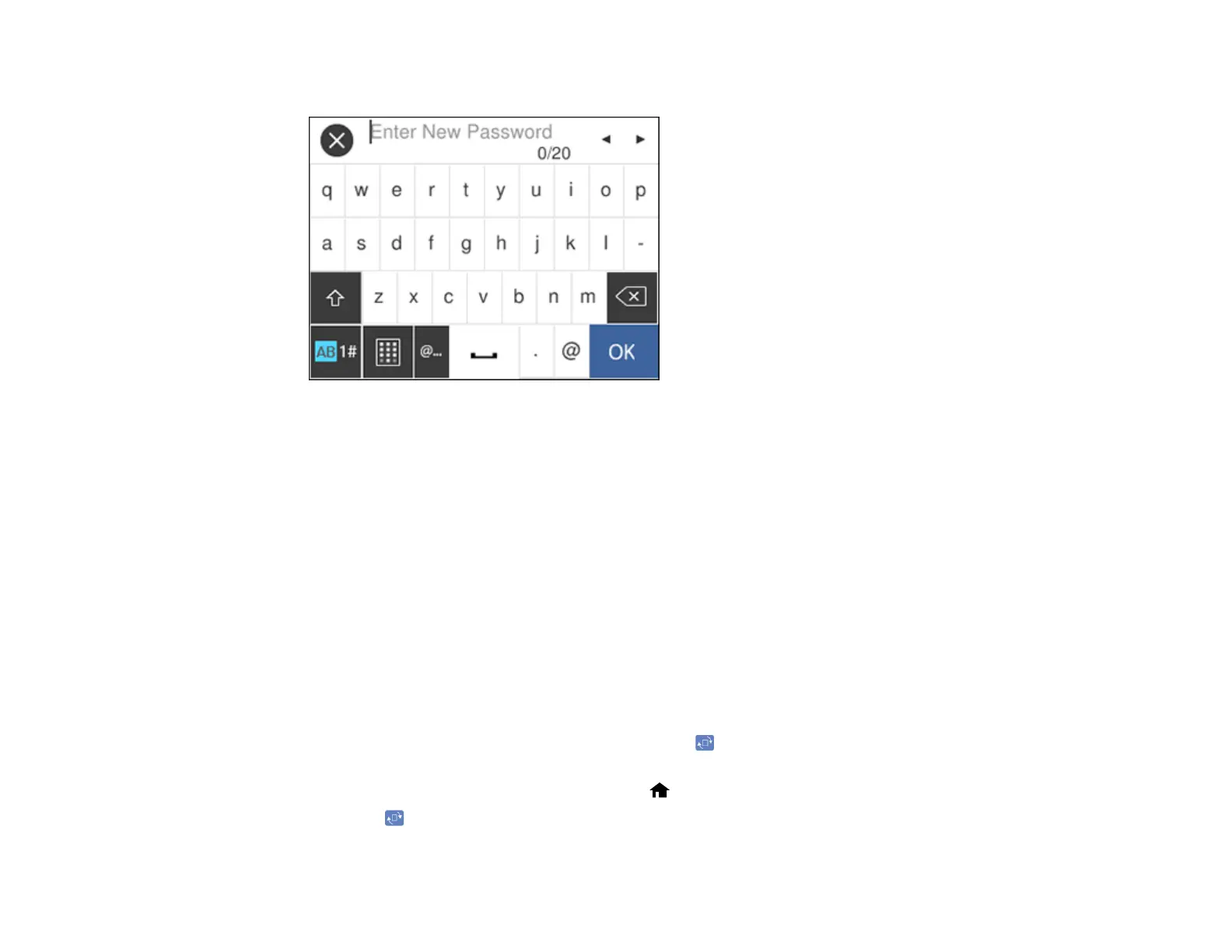 7. Use the displayed keyboard to enter a password and select OK.