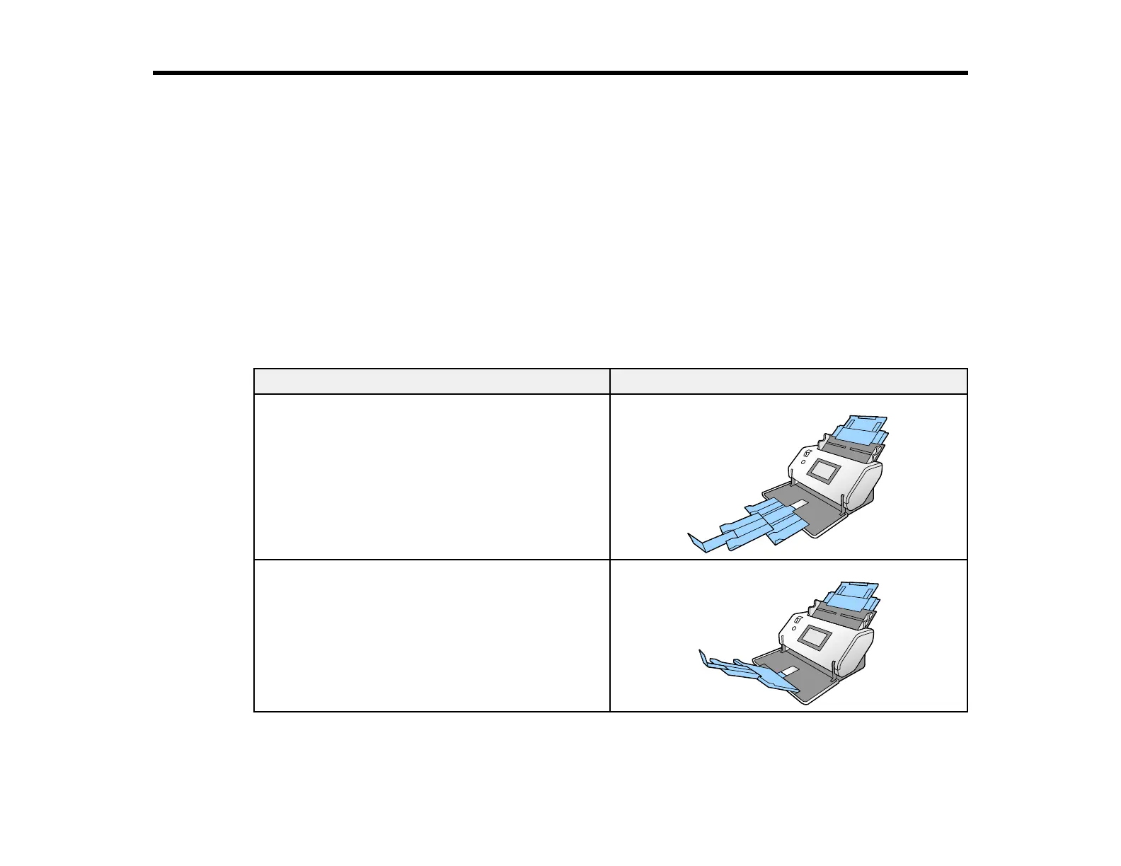 Based on the type and size of the scanned originals, extend the input and output trays to the suggested