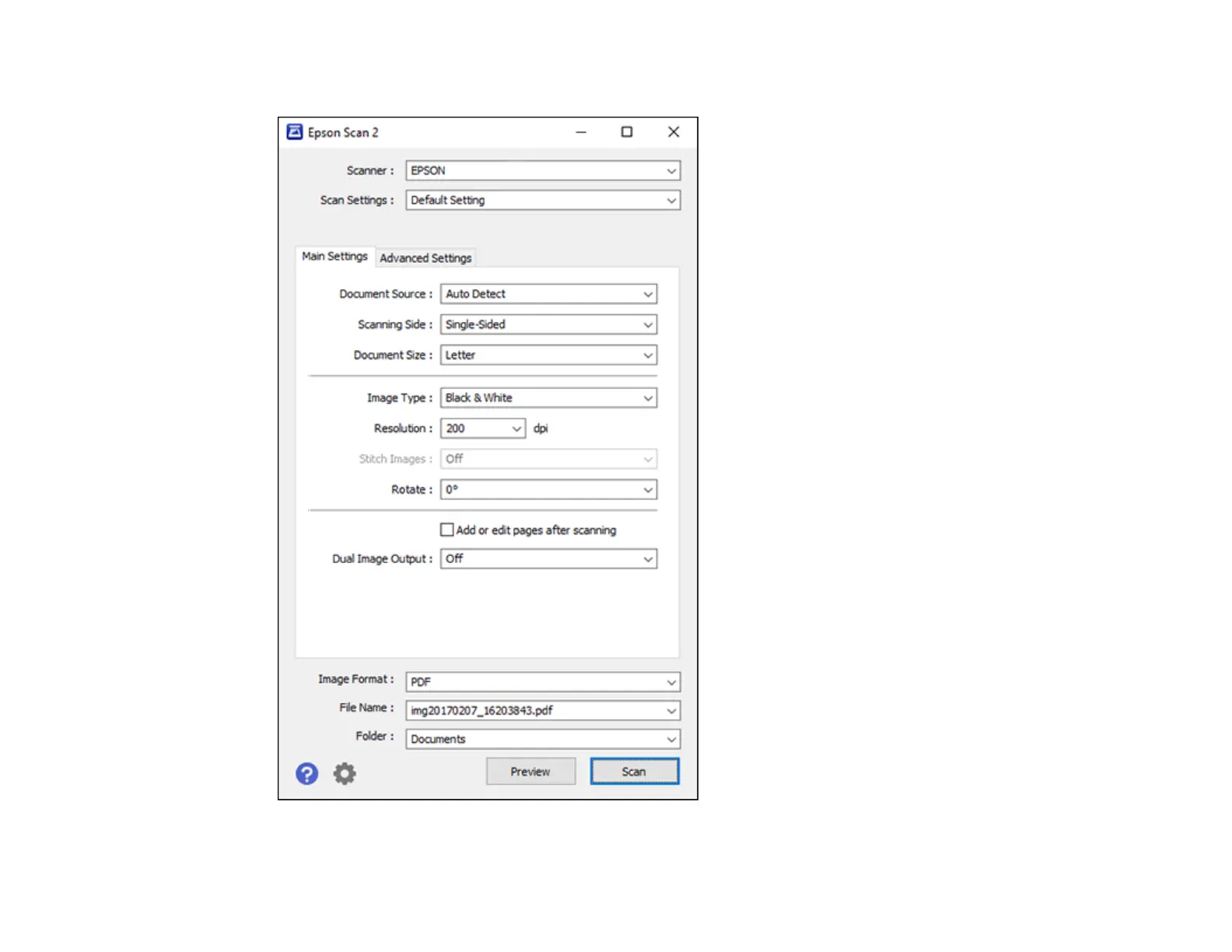 You see an Epson Scan 2 window like this: