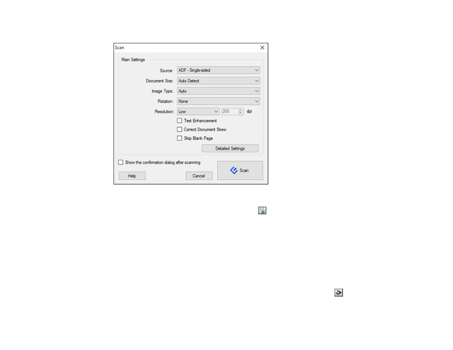 • Windows: Click Detailed Settings. Select any displayed scan settings you want to use and click