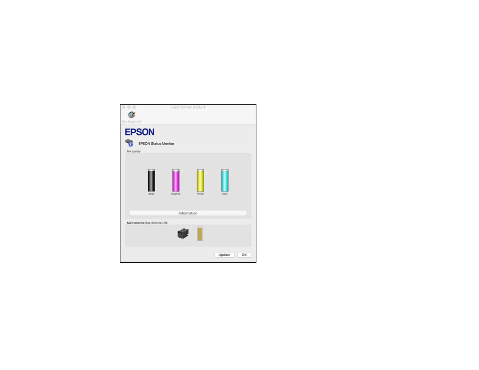 • You can update the ink cartridge and maintenance box status by clicking Update.
