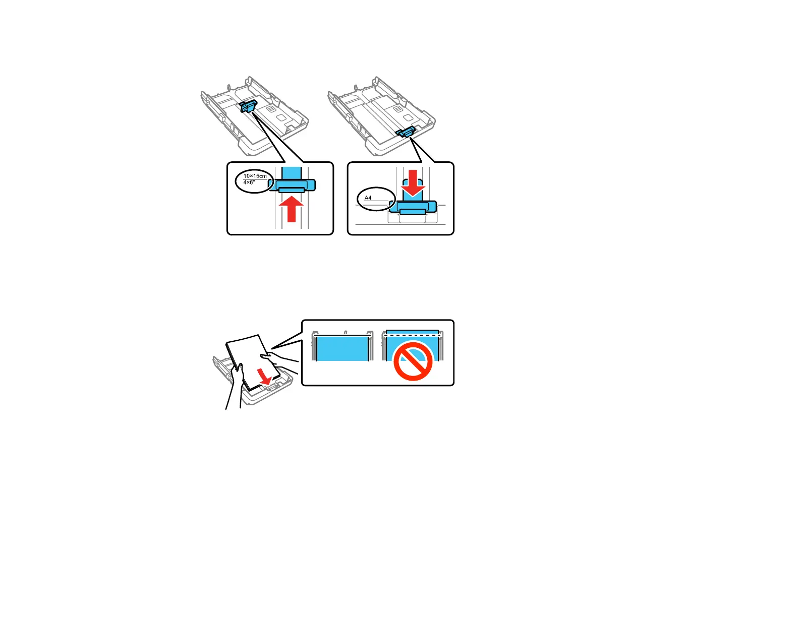 Note: Make sure the paper is loaded against the front edge guide and not sticking out from the