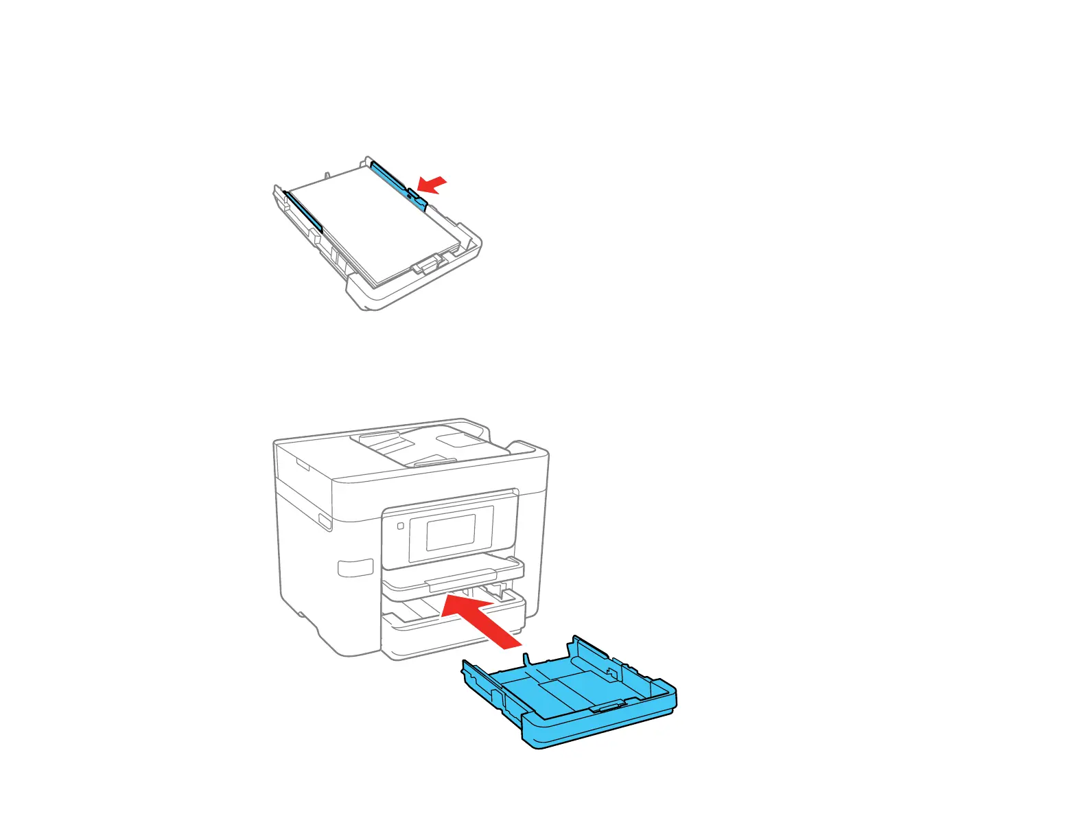 Note: Make sure the paper fits under the tabs on the edge guides.
