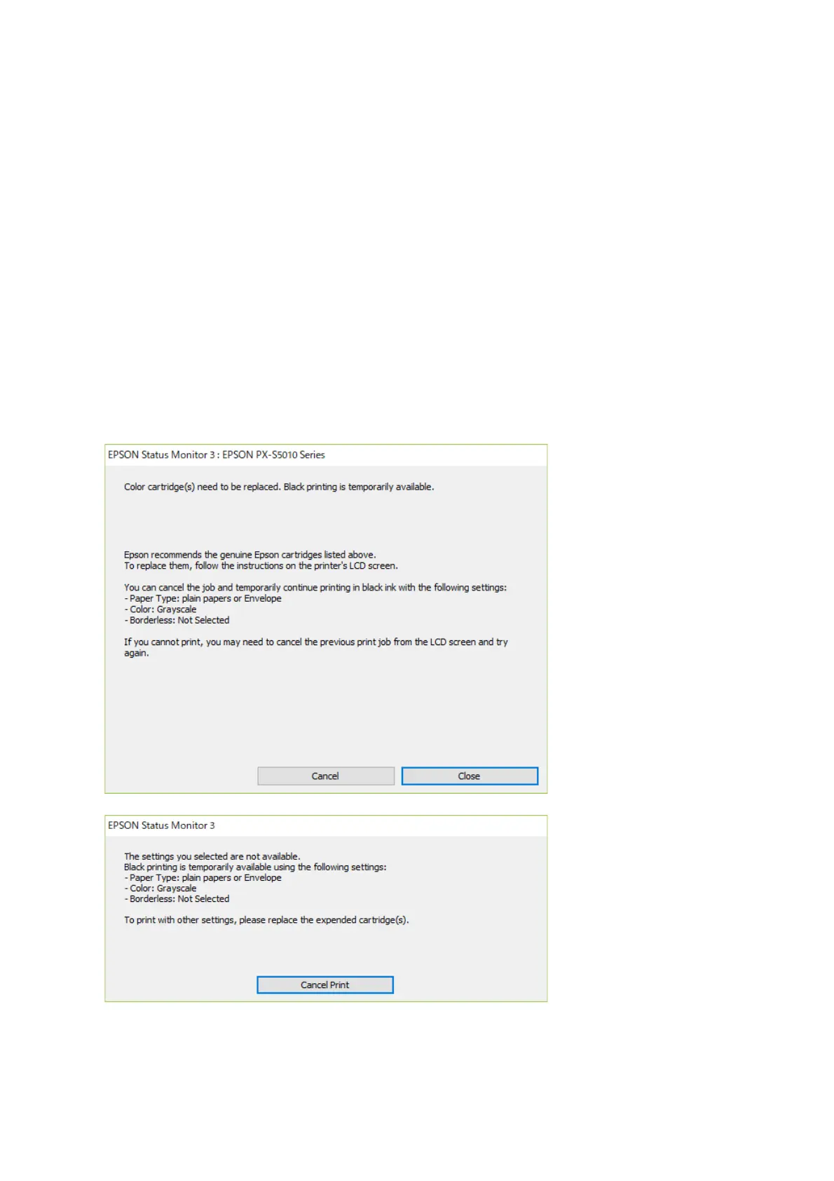 ❏ EPSON Status Monitor 3: Enabled (When printing from the printer driver on Windows.)
