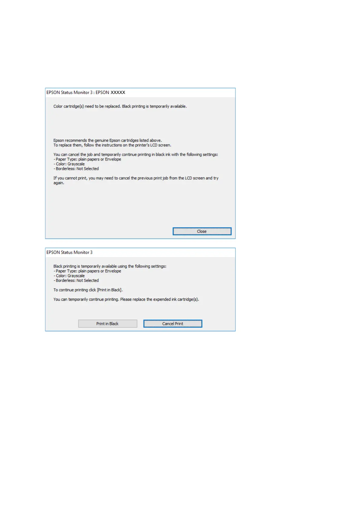 8. Click Print in Black in the window displayed.