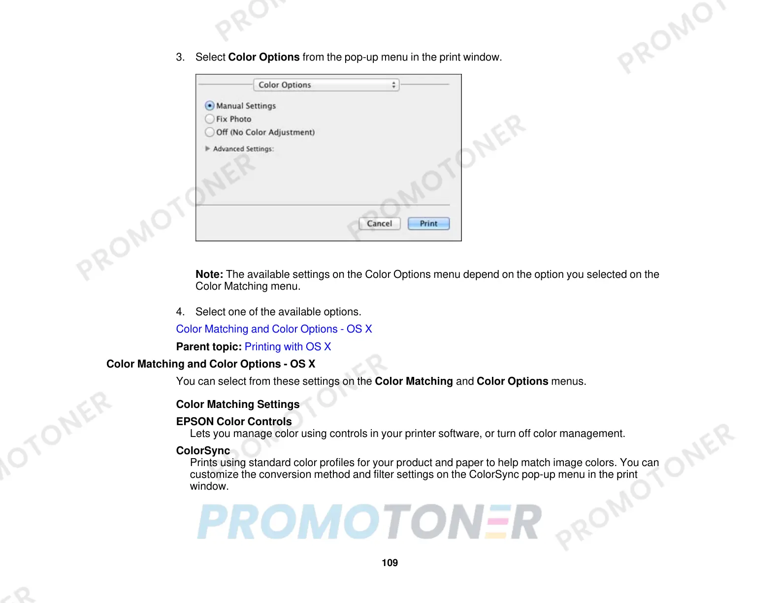 Prints using standard color profiles for your product and paper to help match image colors. You can