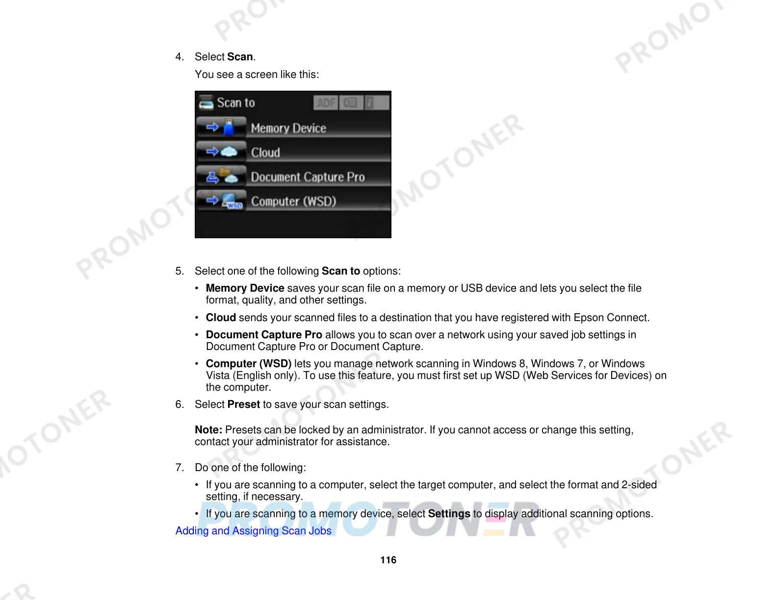 • If you are scanning to a memory device, select Settings to display additional scanning options.