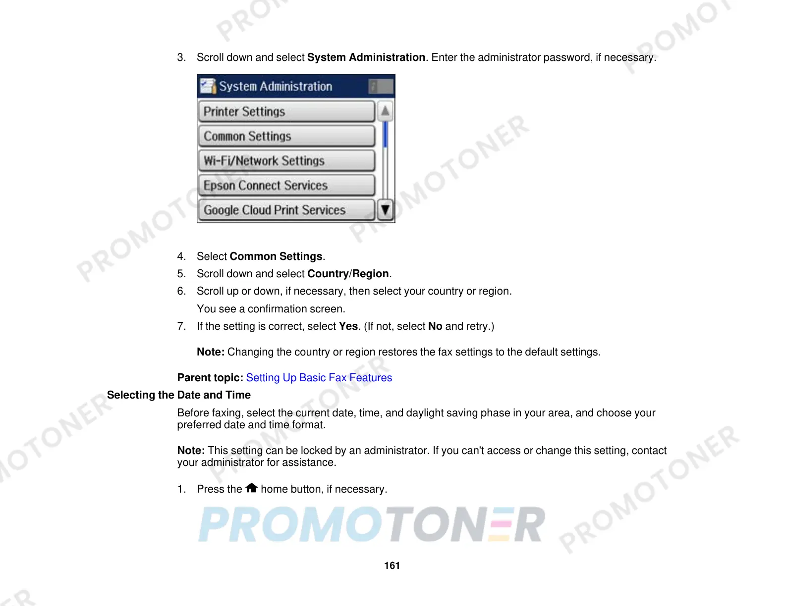 Before faxing, select the current date, time, and daylight saving phase in your area, and choose your