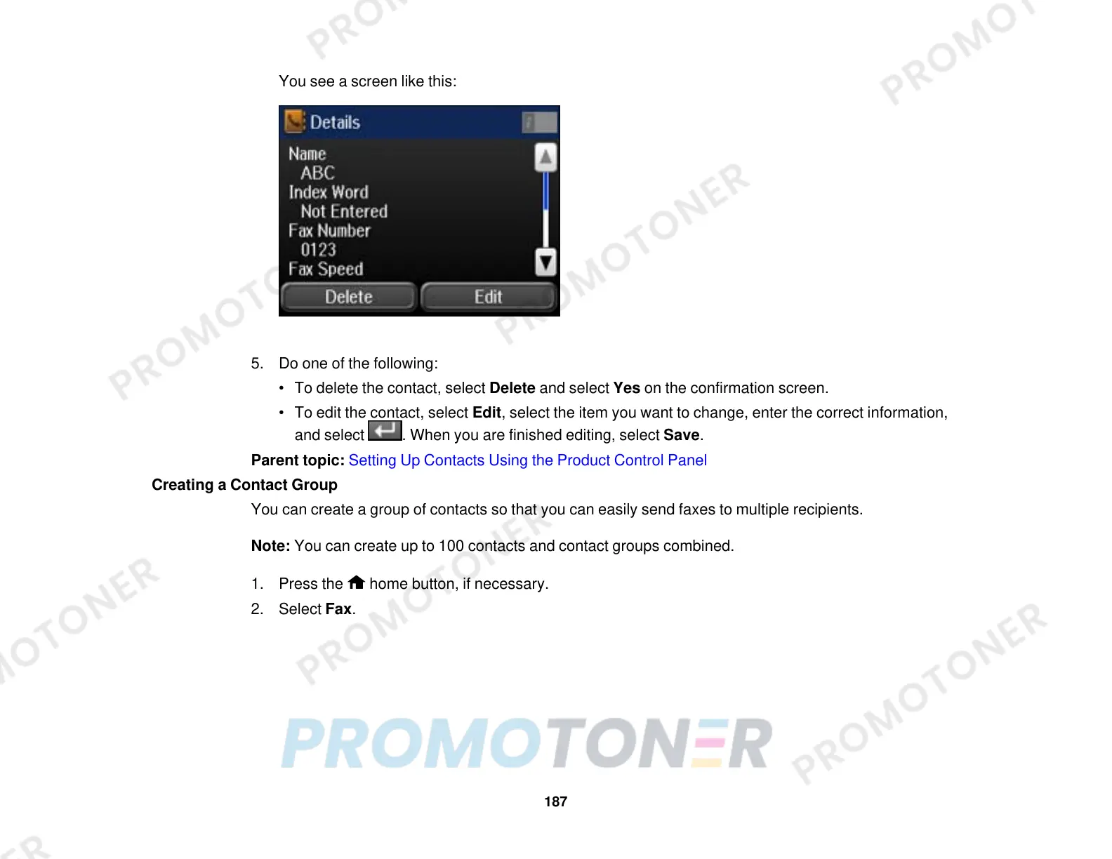 Parent topic: Setting Up Contacts Using the Product Control Panel