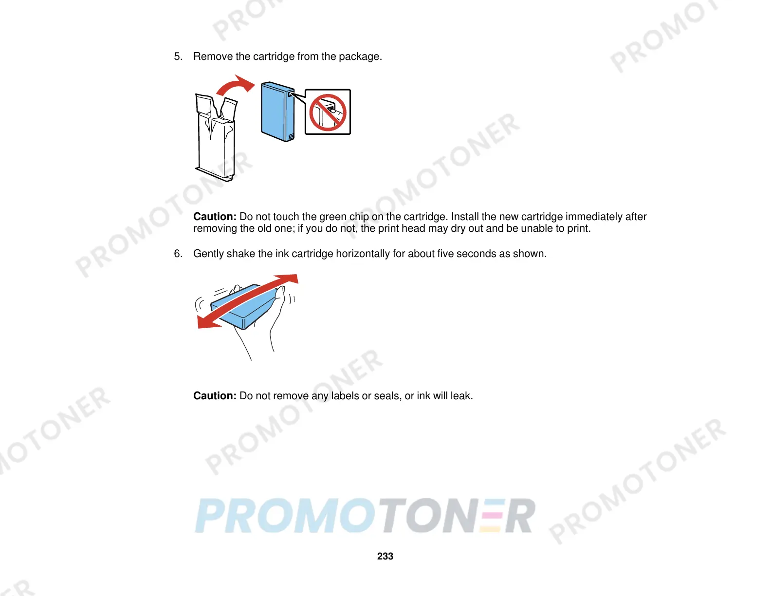 removing the old one; if you do not, the print head may dry out and be unable to print.