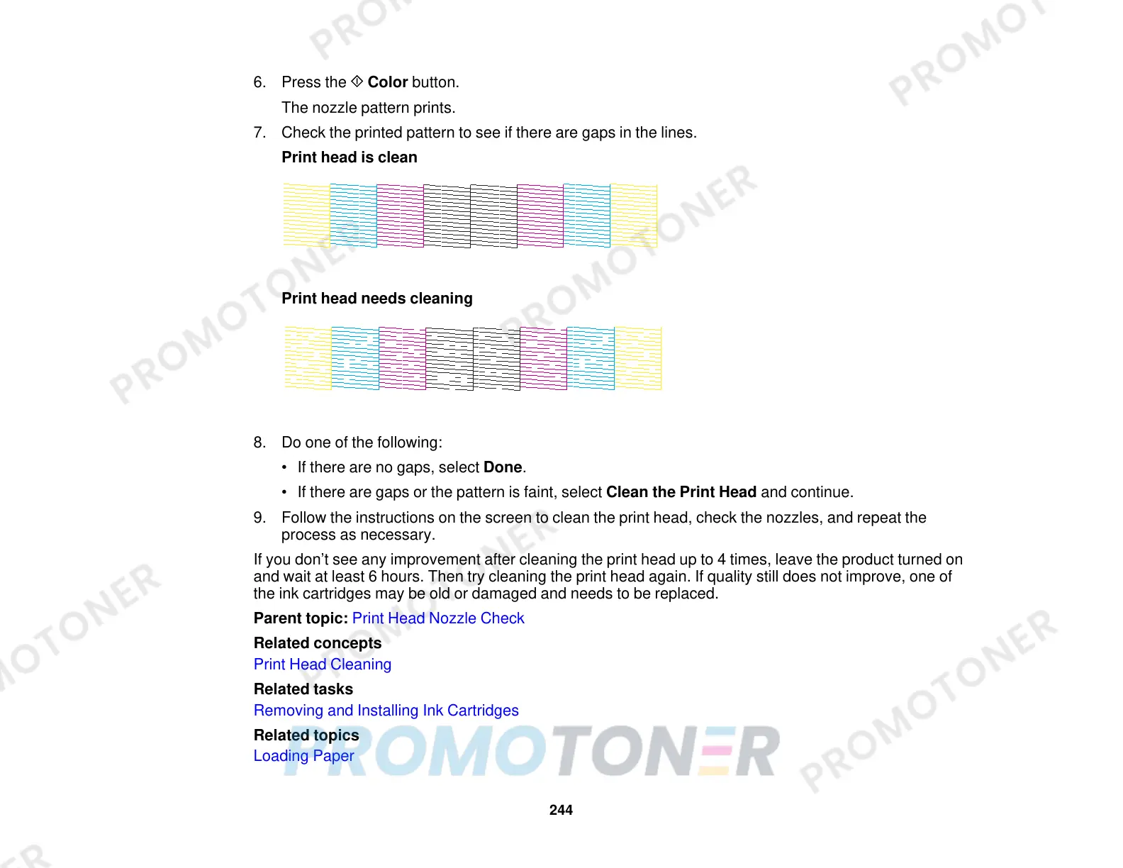 If you don’t see any improvement after cleaning the print head up to 4 times, leave the product turned on