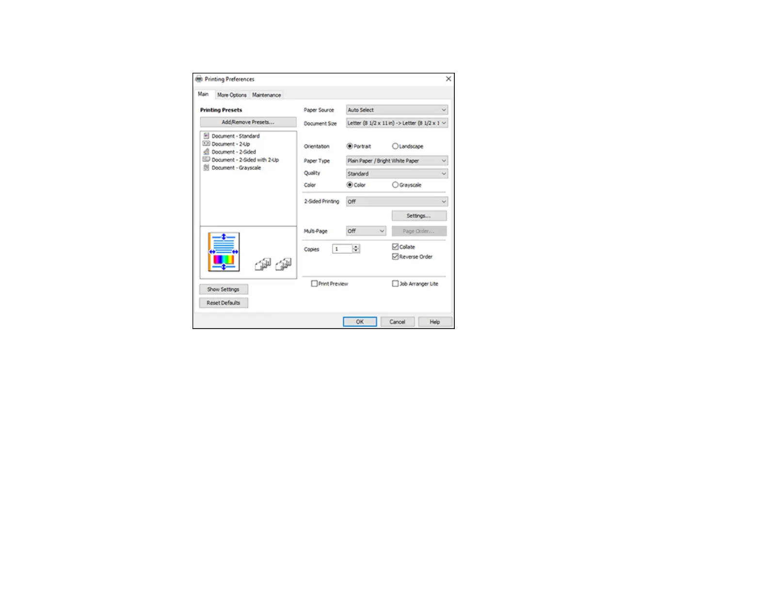 Note: You can also select the User-Defined setting to create a custom paper size.