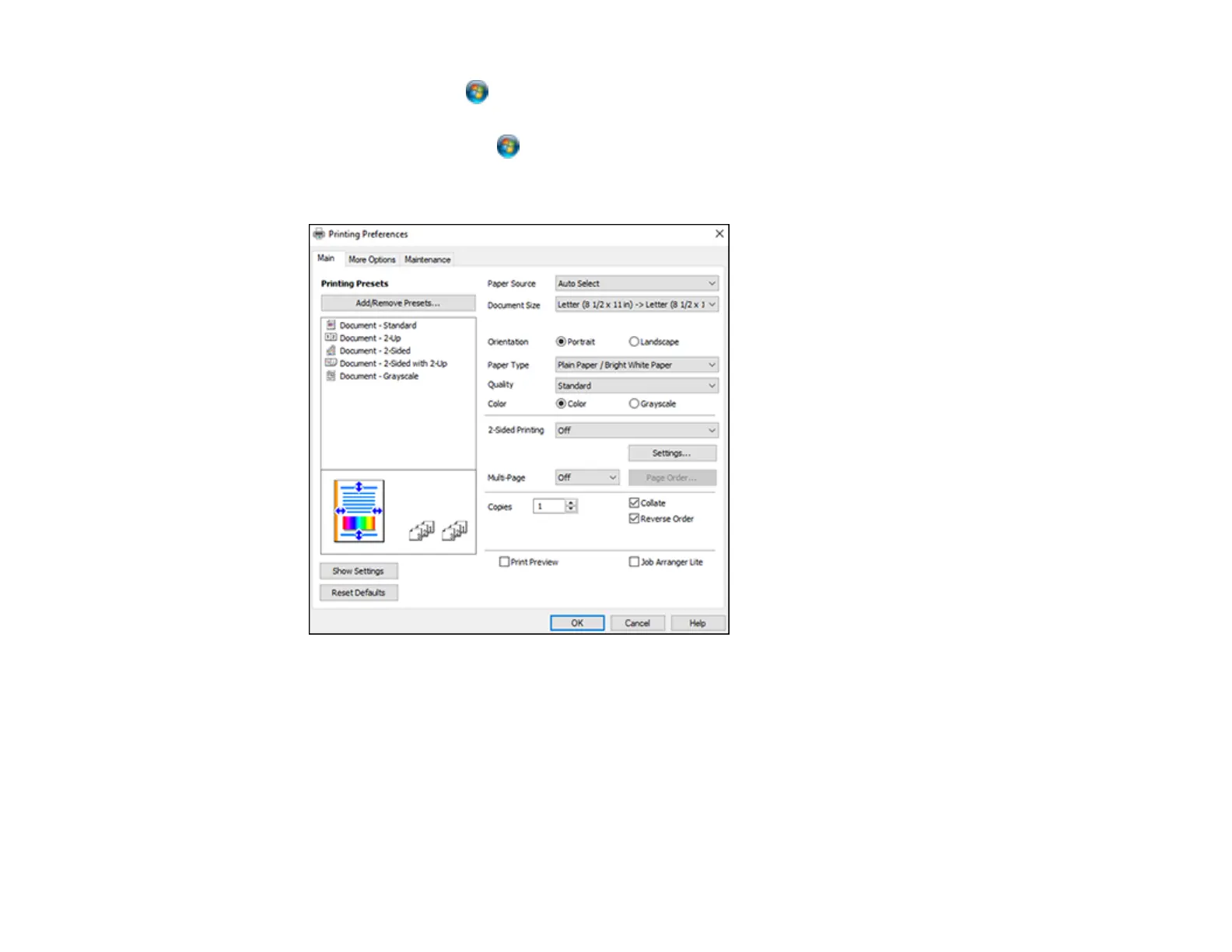 2. Select the print settings you want to use as defaults in all your Windows programs.
