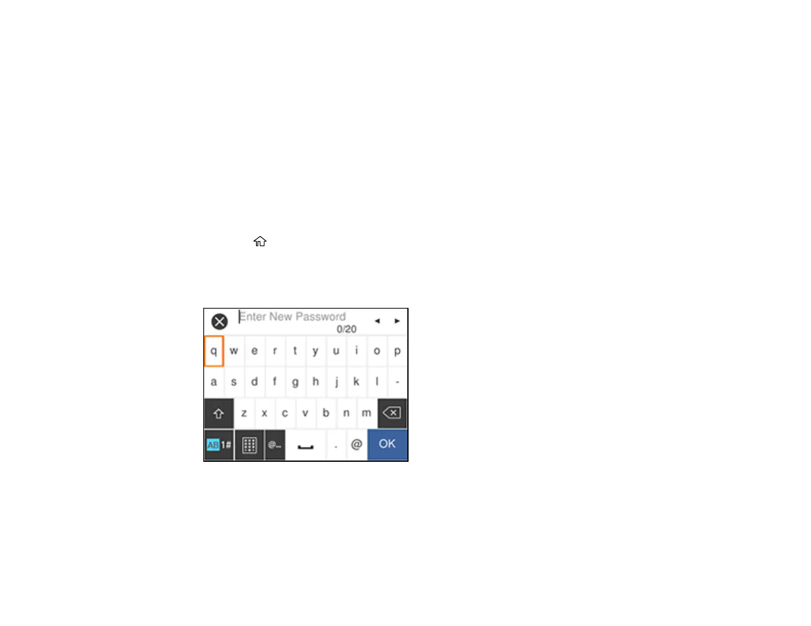 3. Use the displayed keyboard to enter a password, then select OK and press the OK button.