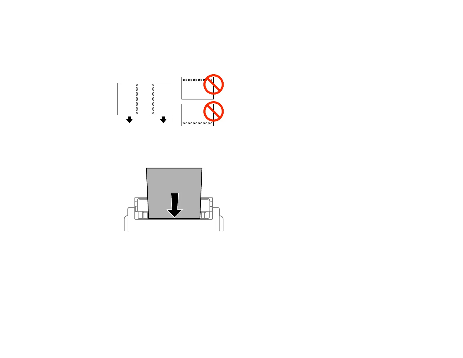 Note: You can load one sheet of binder paper with holes on one of the long edges as shown. Do not