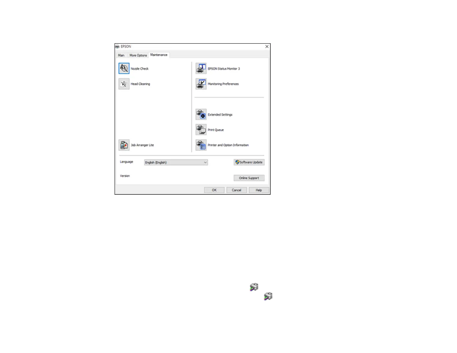The printer software screens appear in the language you selected the next time you access them.