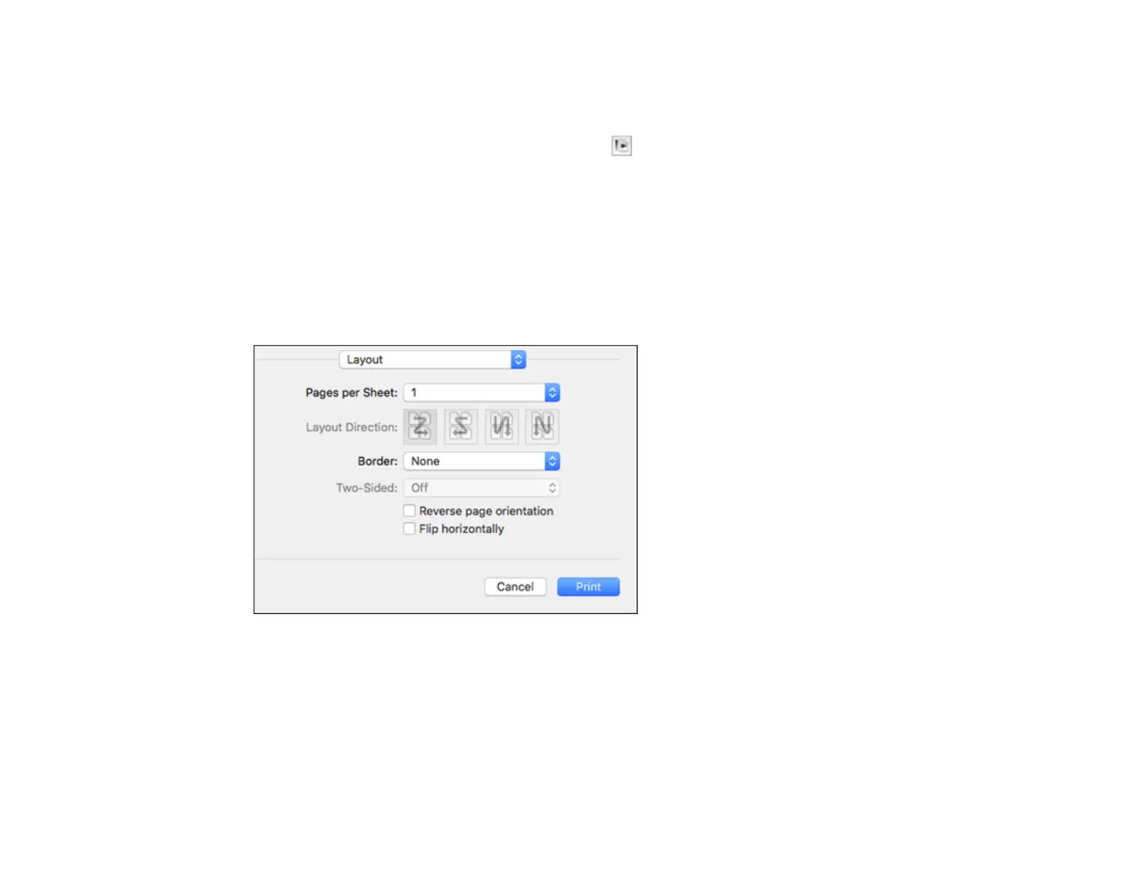 pop-up menu. To arrange the print order of the pages, select a Layout Direction setting.