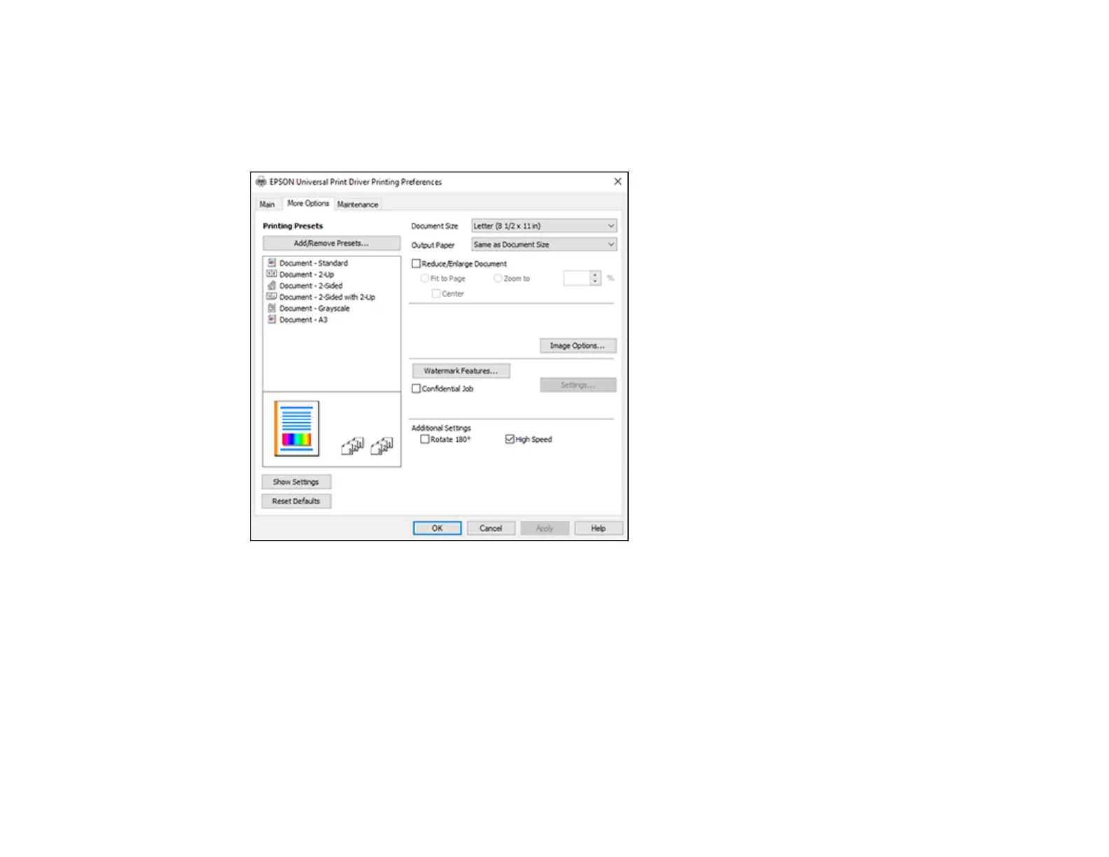 Selecting Additional Layout and Print Options - Epson Universal Print Driver -
