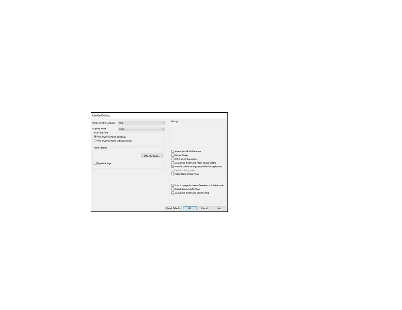 Extended Settings - Epson Universal Print Driver - Windows
