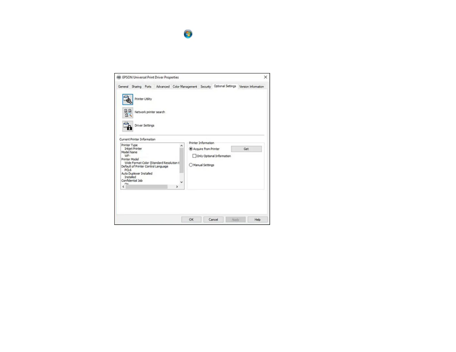 • Windows Vista: Click and select Control Panel. Click Printer under Hardware and Sound,