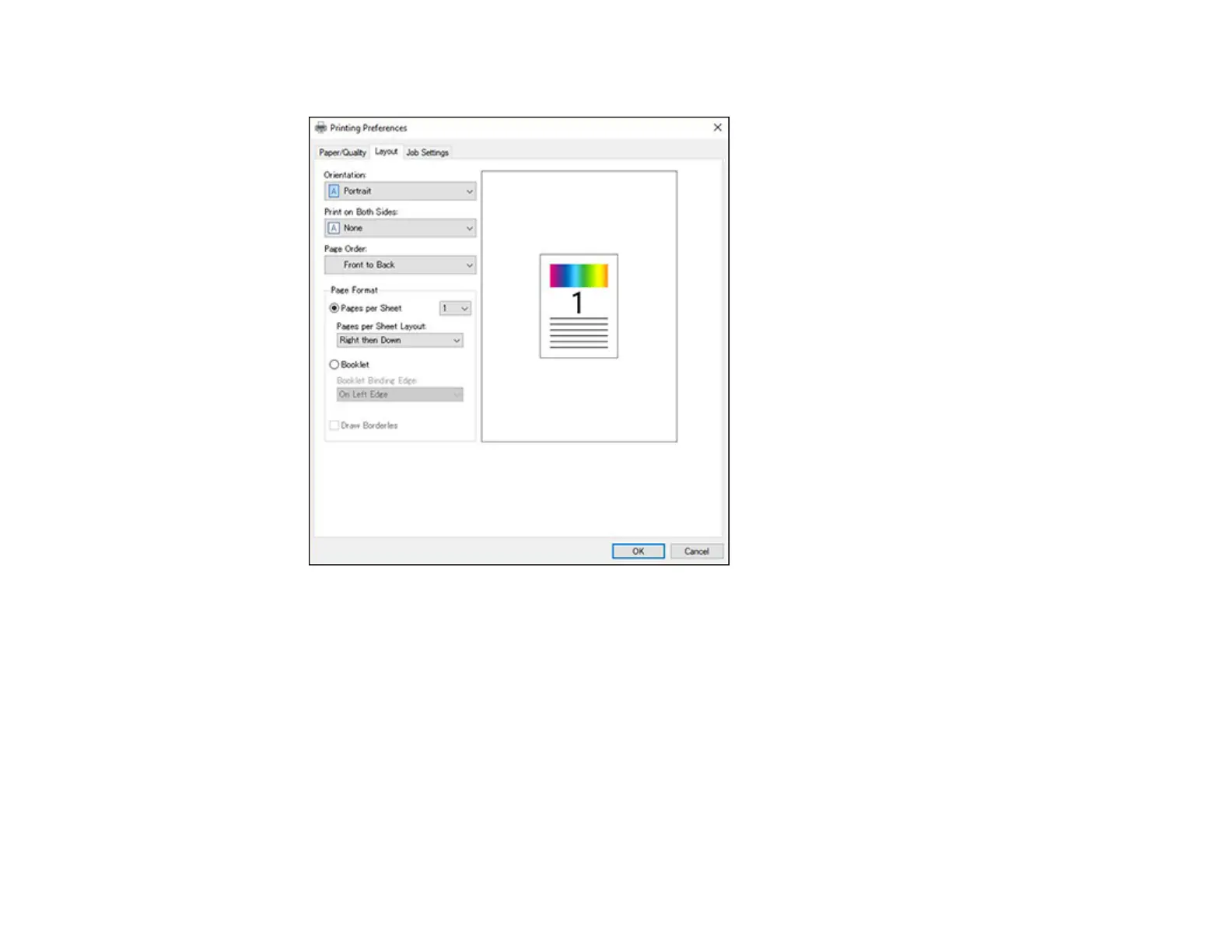 10. To change the printing order of the pages, select one of the Page Order settings.