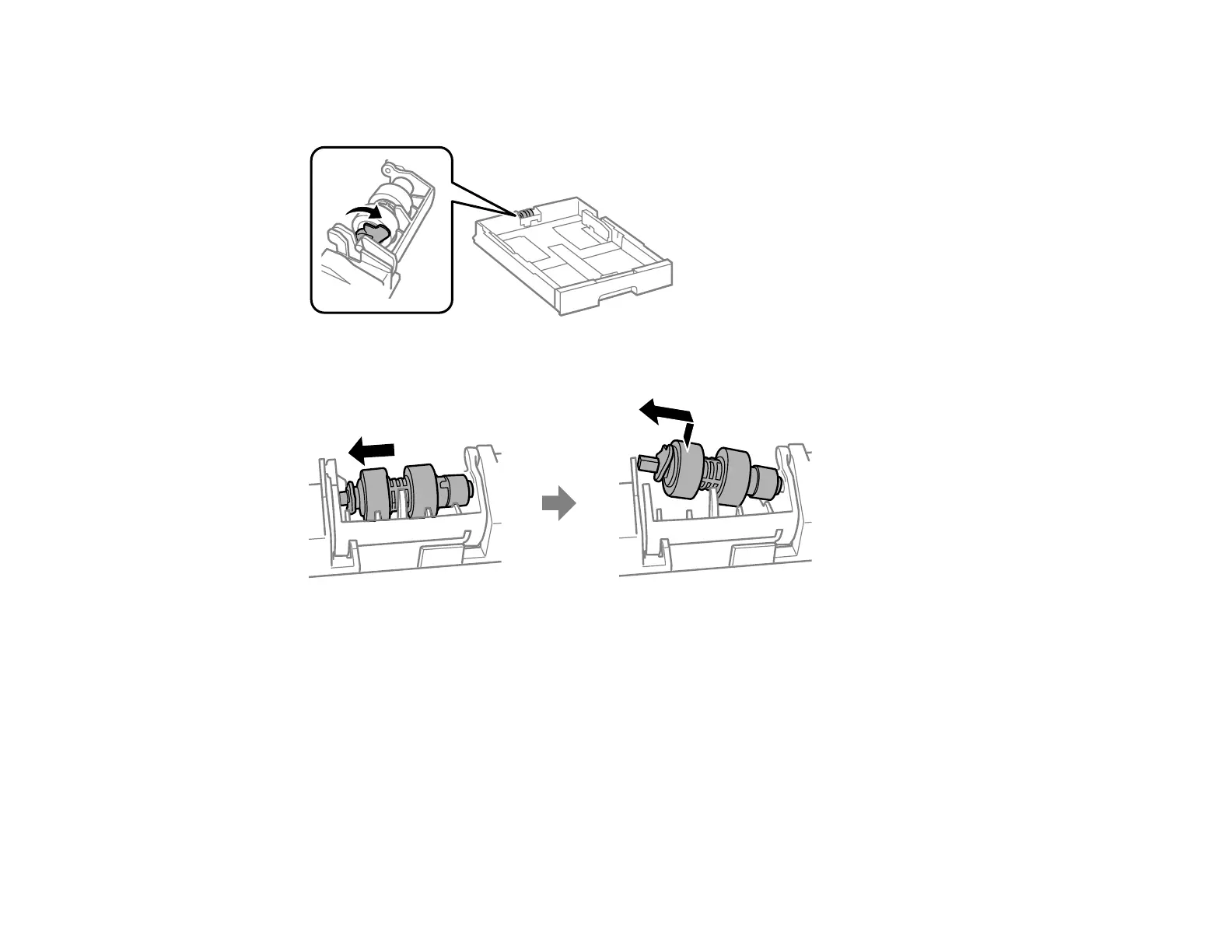 13. On paper cassette 1, pull up on the lever as shown to release the roller.