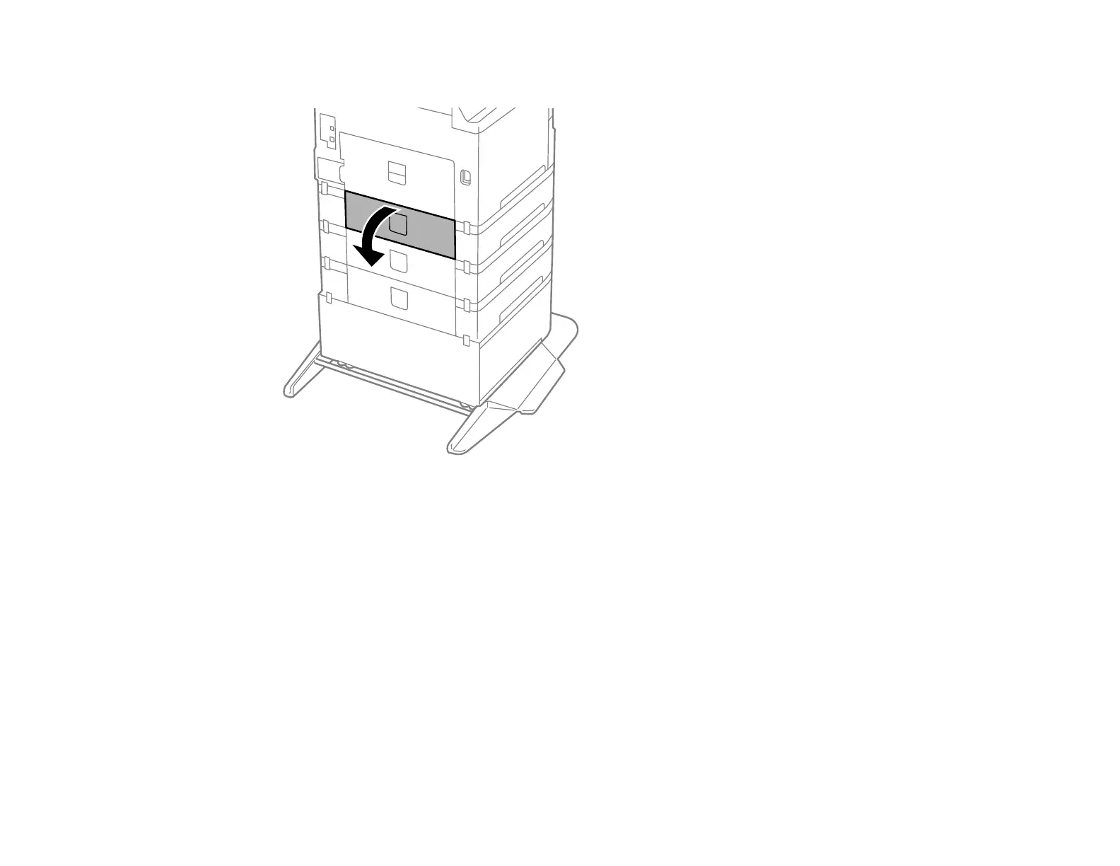 5. Open the rear cover (E) that matches with the paper cassette you removed.