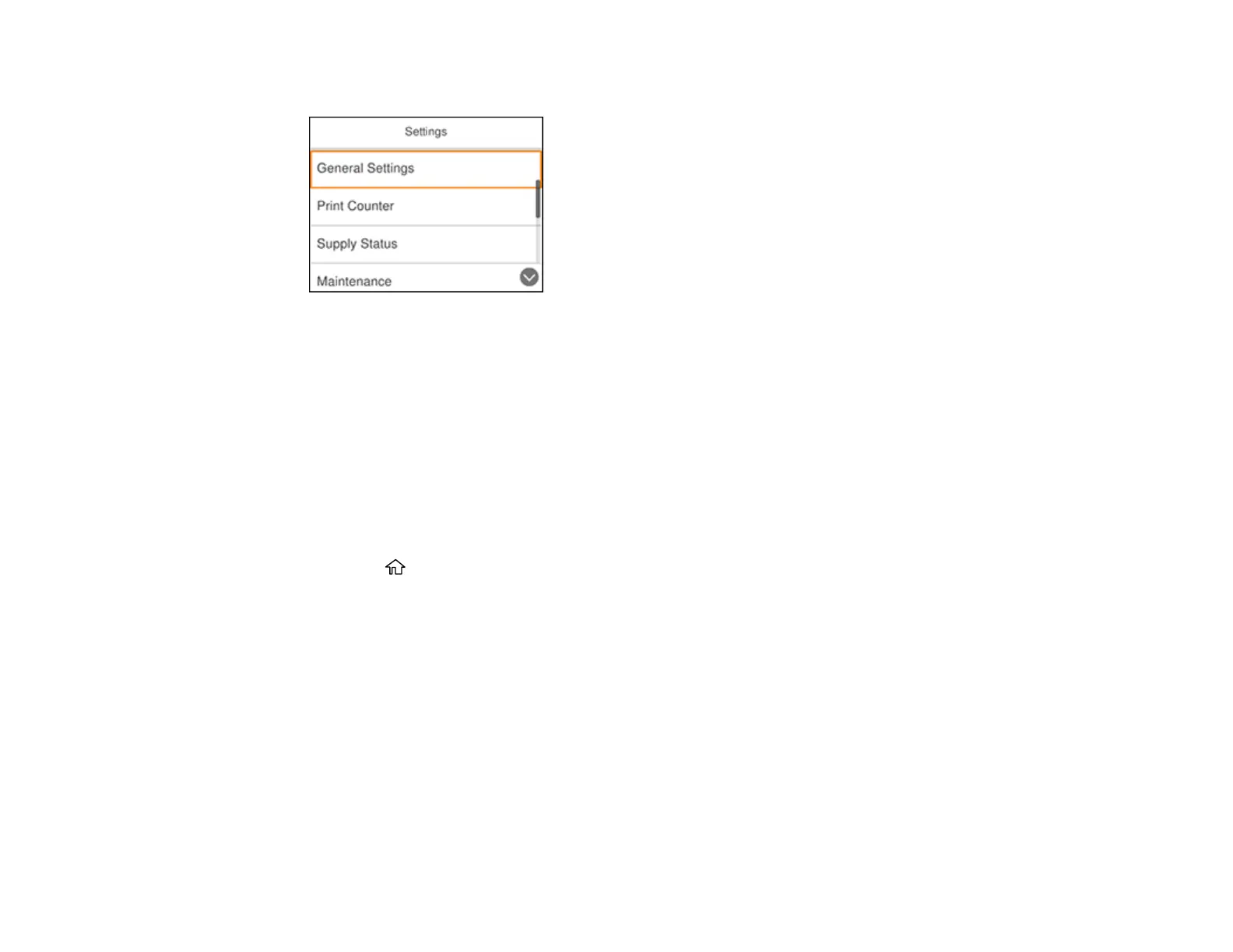 3. Select General Settings and press the OK button.