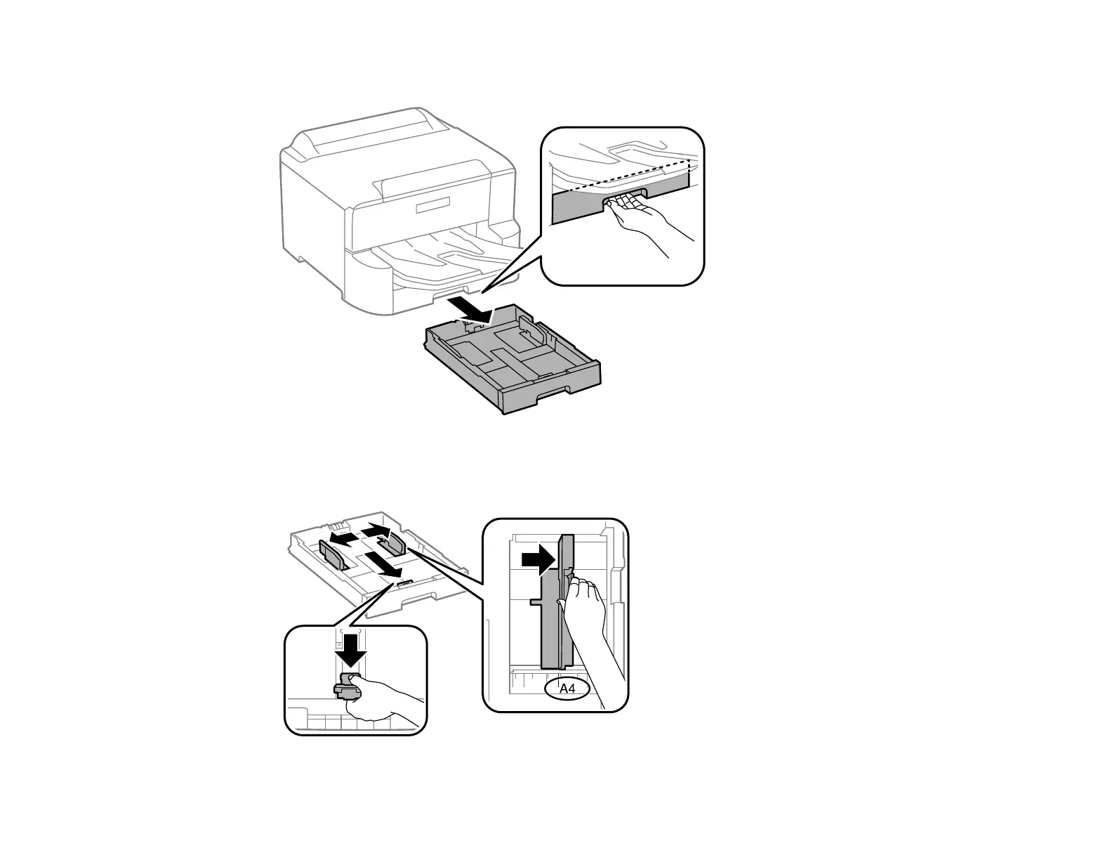 2. Slide the front edge guide outward all the way, then slide the side edge guides to the paper size you