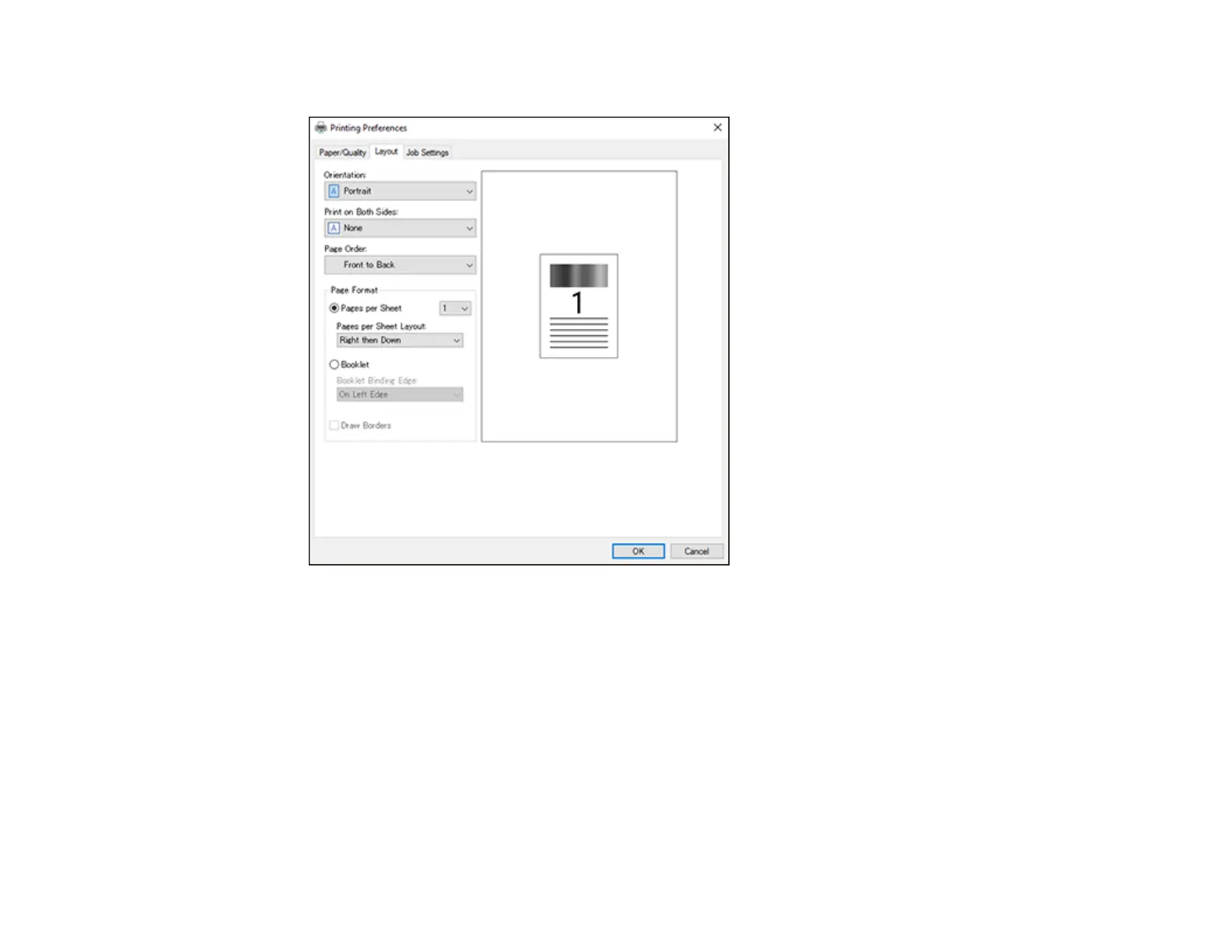 3. Select the print settings you want to use as defaults in all your Windows programs.