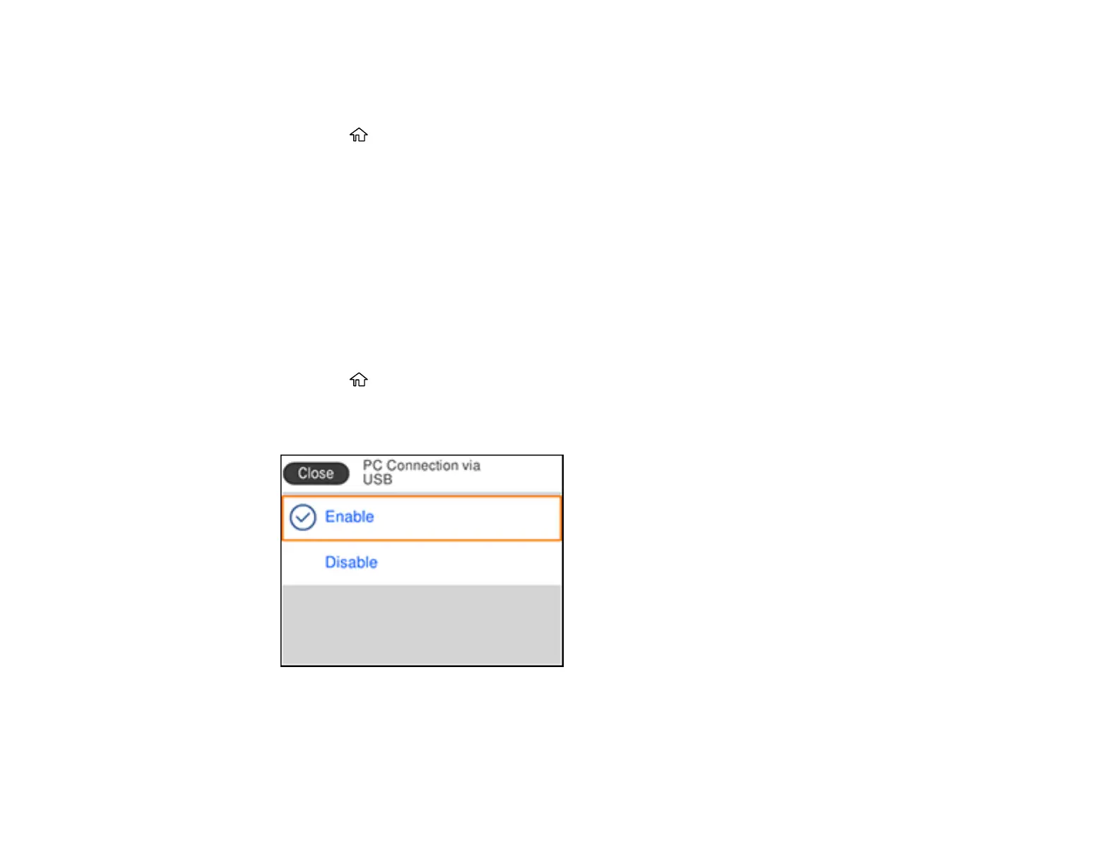 2. Select Settings > General Settings > Printer Settings > PC Connection via USB.