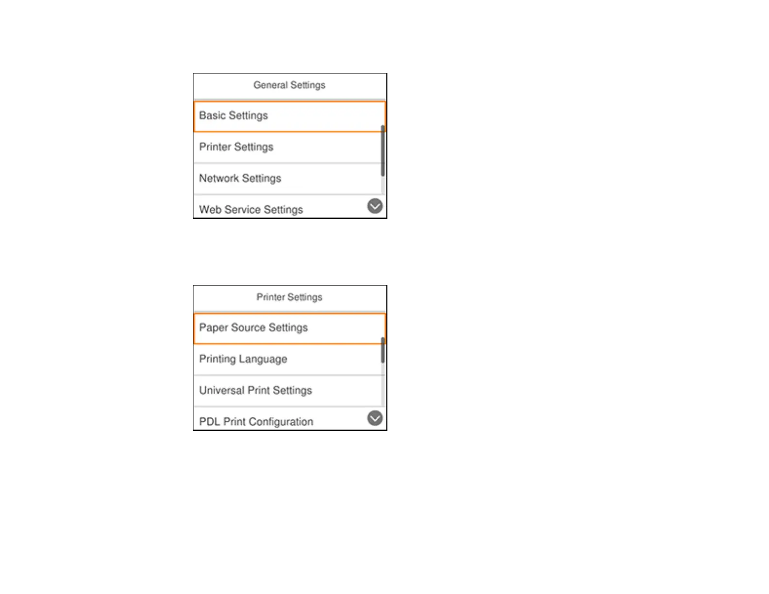 6. Select Paper Source Settings.